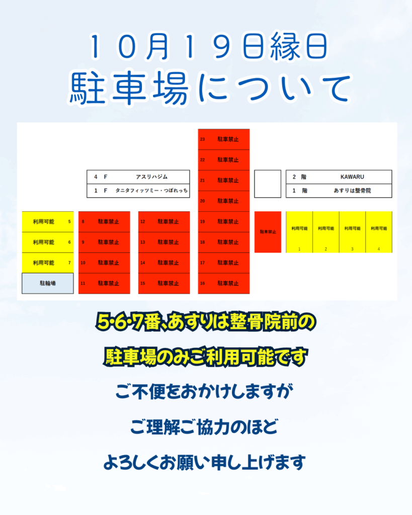 当日は黄色の部分のみが駐車可能エリアとなっております。 ご来場の際は、できる限り公共交通機関のご利用にご協力いただけますと幸いです。 皆さまのご来場を心よりお待ちしております!