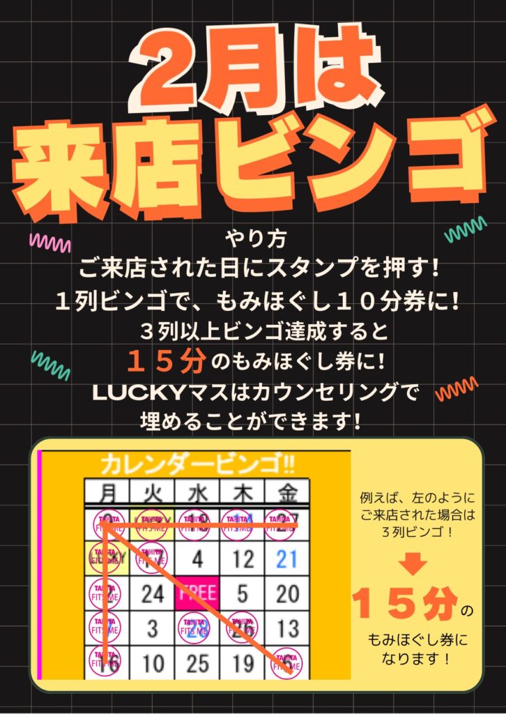 1列ビンゴで10分のもみほぐし券